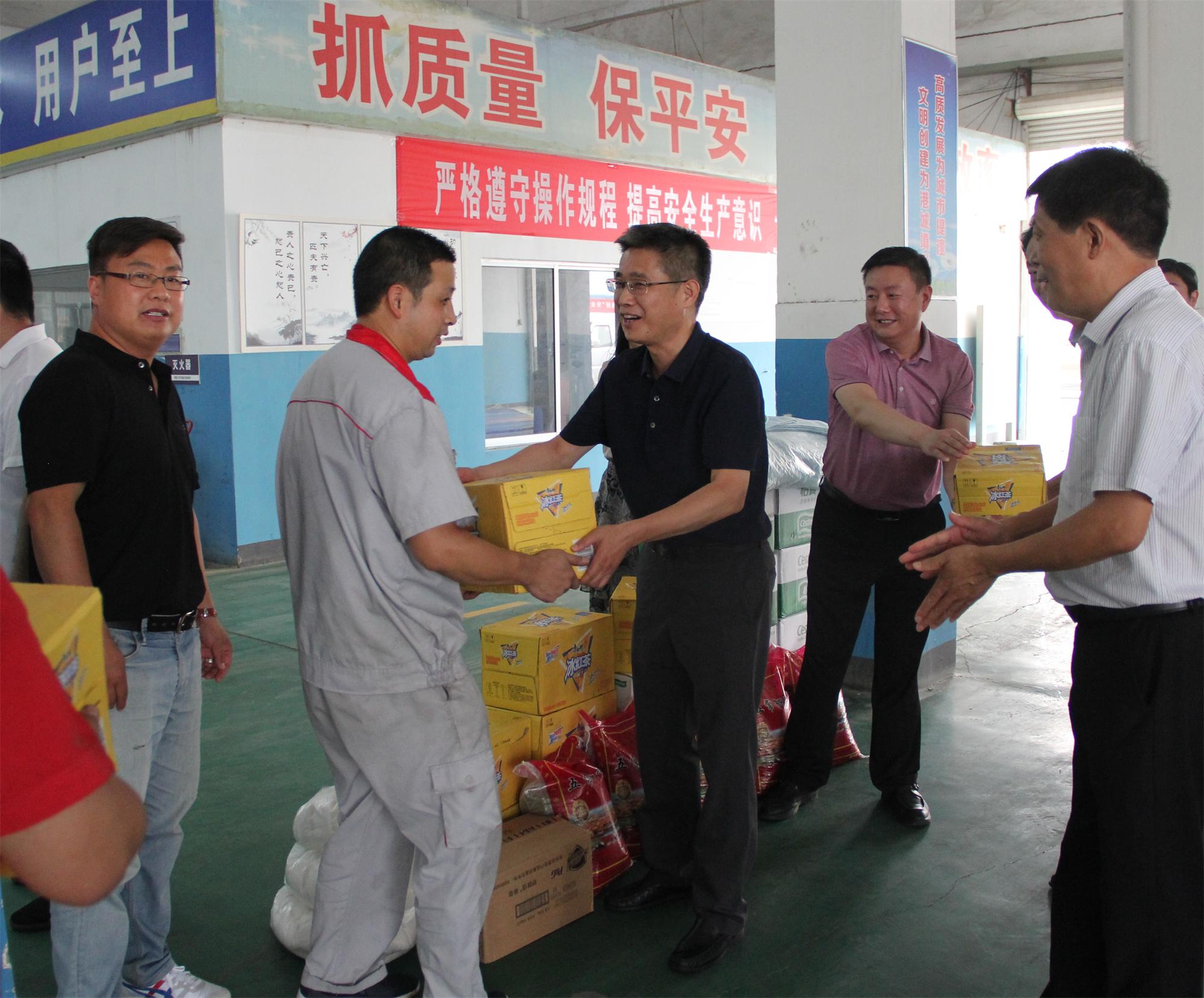 為切實(shí)做好夏季防暑降溫工作,保障員工身心健康,7月16日,集團(tuán)總經(jīng)理仲偉濤、副總經(jīng)理李樹軍、工會主席王中永、副主席張曉紅一行深入修理公司和蘇港檢測站等車間慰問一線車間工人,為一線職工送來了飲料、綠豆、毛巾、香皂等防暑降溫物資,汽服公司領(lǐng)導(dǎo)班子參加慰問活動。