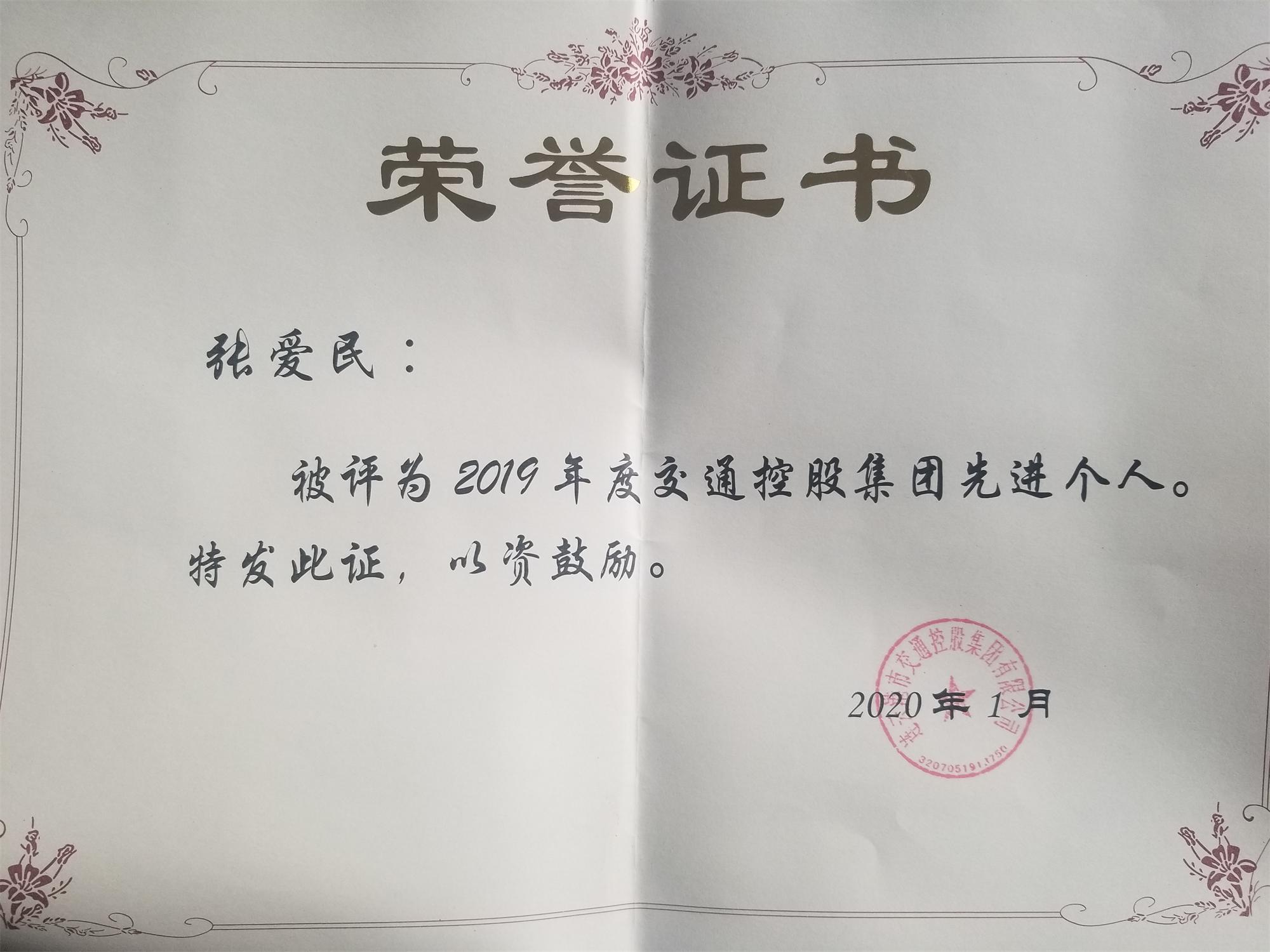 蘇港檢測(cè)中心張愛(ài)民榮獲交通控股集團(tuán)2019年度先進(jìn)個(gè)人