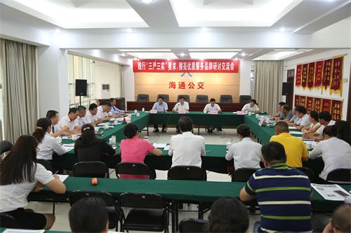 8月19日下午,由海通集團權(quán)屬單位公交公司、汽服公司、汽車公司組織開展的踐行“三嚴三實”要求、擦亮優(yōu)質(zhì)服務(wù)品牌研討交流會在公交公司三樓會議室舉行,市文明辦副主任劉永鑫、海通集團董事長、黨委書記劉永能,汽服公司總經(jīng)理趙士強、黨委書記劉元祥、工會主席趙明及三家單位主要領(lǐng)導(dǎo)、2014年度最美海通人及提名獎獲得者、“黨員的士”、“雷鋒的士”代表近40余人參加了會議,集團紀委書記趙煦主持會議。