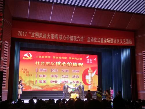 上午9點,文藝演出在銅管樂合奏中拉開帷幕,隨后舞蹈、獨唱、合唱等精彩節(jié)目逐一上演,現(xiàn)場的喝彩聲和掌聲不斷。據悉,此次演出由市委宣傳部、市文明辦、市文廣新局、市文聯(lián)、市總工會等單位聯(lián)合主辦,結合目前的創(chuàng)建全國文明城市活動,旨在通過主題宣傳活動將社會主義核心價值觀送進廣場、送進社區(qū)、送進鄉(xiāng)村、送進學校、送進企業(yè)、送進軍營,推動核心價值觀落細落小落實,讓核心價值觀成為市民“日用而不覺”的主流意識,從普及、普遍知曉到深化、主動踐行。
