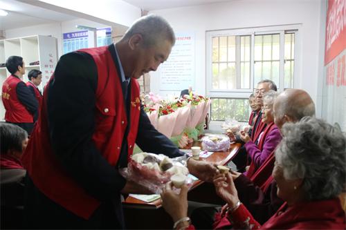 “大爺大媽,祝您們重陽節(jié)快樂、健康長壽!焙V輩^(qū)九龍社區(qū)會議室熱鬧非凡,“黨員的士”隊員們一邊將鮮花捧送給老人們一邊說道。12位老人們個個精神飽滿,臉上綻開了幸福的笑容、開心地說:“太感謝了,謝謝你們!”